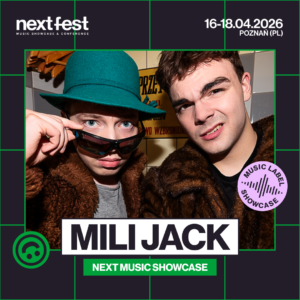 Skład Next Music zamyka Mili Jack – duet z Piły, który przebojem wdarł się do świadomości słuchaczy dzięki viralowej „Sangrii”. Ich muzyka to energetyczna mieszanka popu, rapu i EDM-u. Zespół przygotowuje się właśnie do wiosennej premiery debiutanckiego longplaya, który ma szansę na stałe zagościć w świadomości fanów szczerego, nowoczesnego popu.